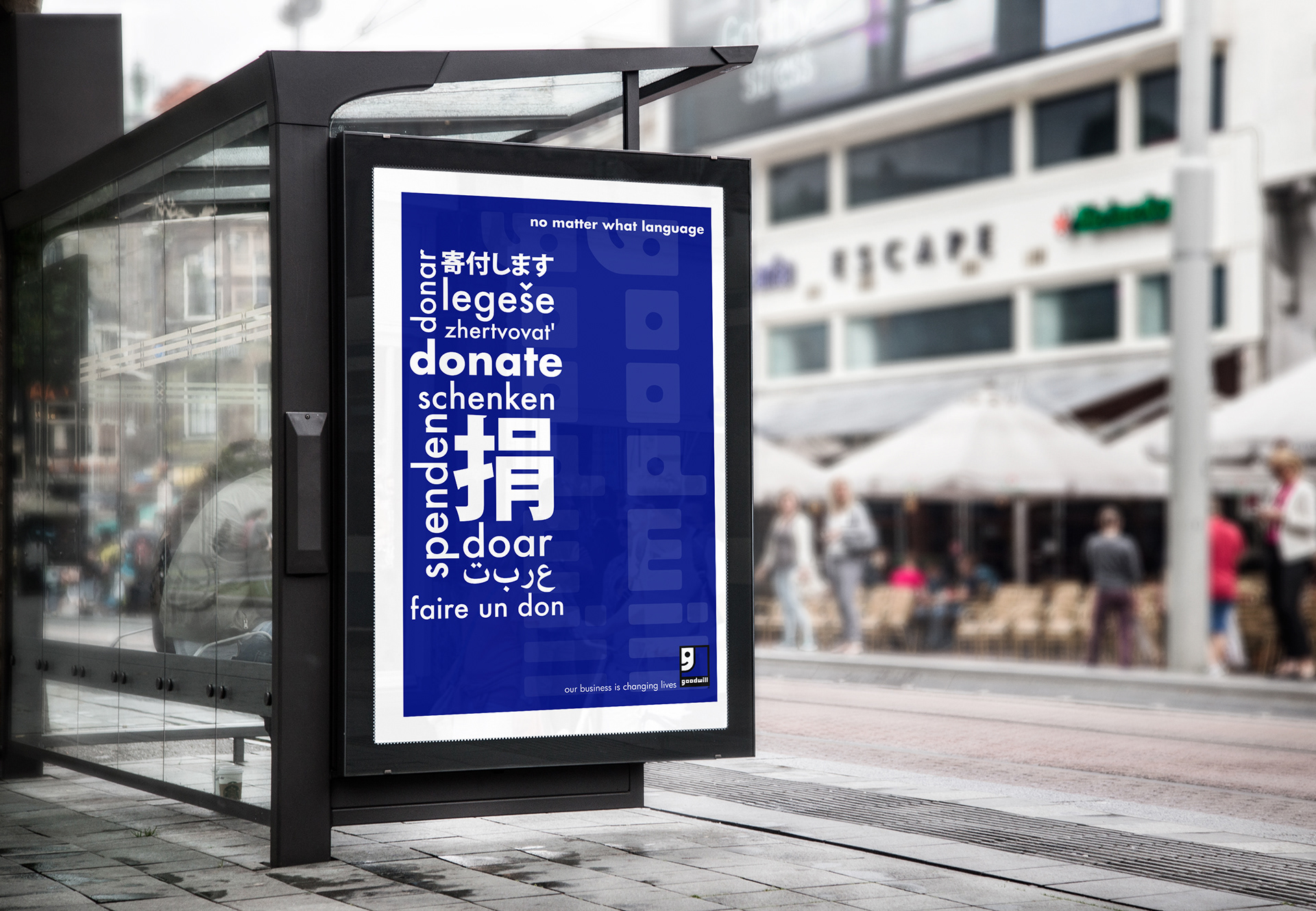Donate bus stop poster | "No matter what language donate."